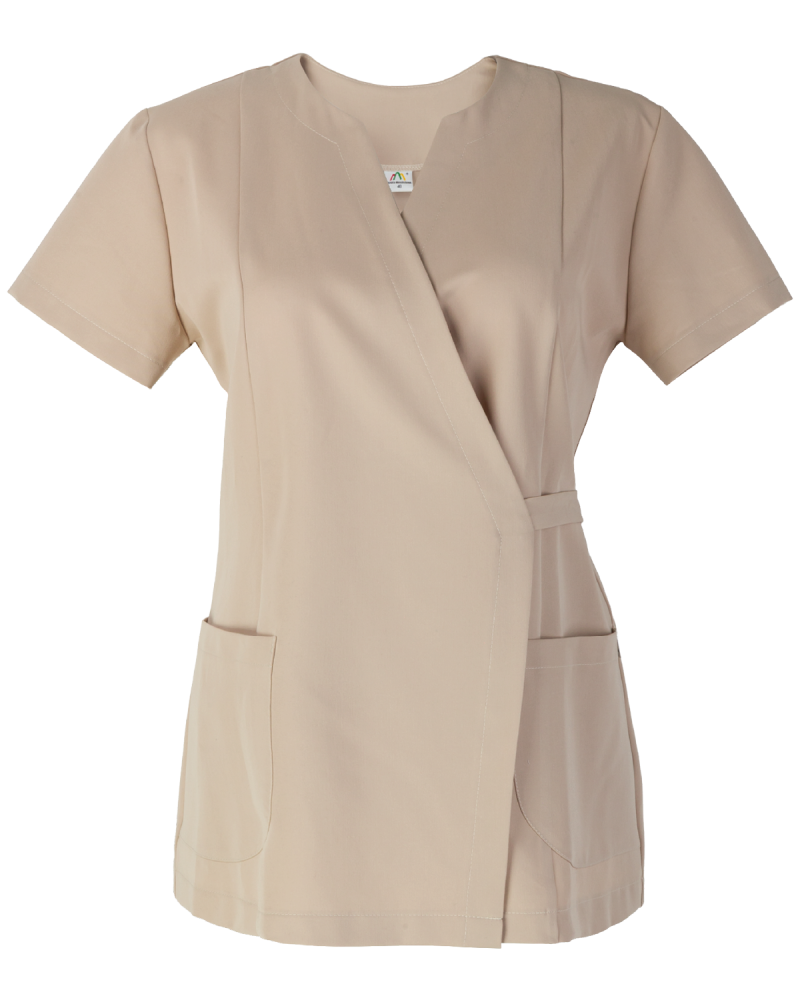 Beżowa bluza medyczna damska 331B to wygodna, lekko taliowana tunika kopertowa wiązana z tyłu paskiem, zaprojektowana z myślą o pełnym komforcie i swobodzie ruchów podczas pracy. Kimono medyczne szyte z wysokiej jakości materiałów, dopasowane do indywidualnych sylwetek sprawdzi się głównie, ale nie tylko w klinikach medycznych, salonach kosmetycznych, ośrodkach spa. Dekolt w kształcie litery „V”, krój kopertowy i praktyczne kieszenie czynią ją nie tylko stylową, ale także funkcjonalną. Bluza posiada szerokie przednie kieszenie otwarte, które pomieszczą niezbędne akcesoria.