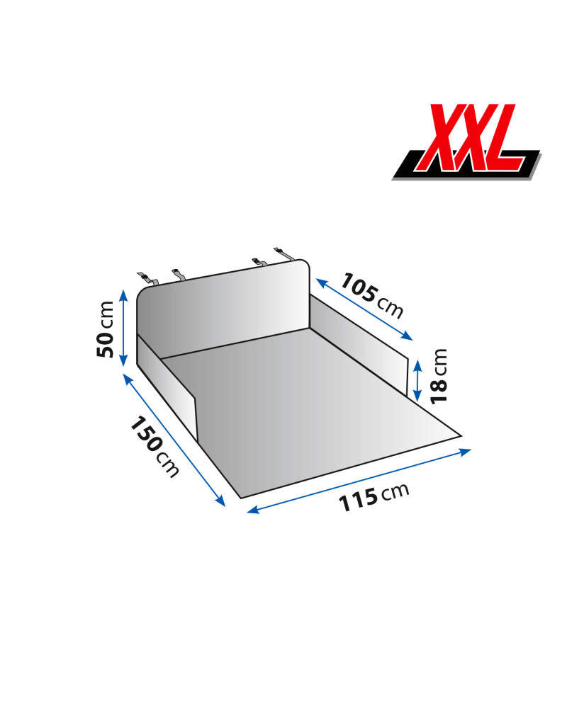 Ochronny pokrowiec do przewozu psa w bagażniku samochodu typu kombi, SUV lub hatchback. Zapewnia przewożonemu psu w bagażniku komfortową przestrzeń dzięki miękkiej antypoślizgowej podstawie i bocznych wyłożeniach z bezzapachowych i przyjaznych dla skóry materiałów. Skutecznie chroni bagażnik samochodu przed wszystkimi zabrudzeniami mogącymi powstać podczas przewozu psa jak błoto, sierść, woda czy nawet wymioty lub kał. Wysunięta tylna klapa pokrowca chroni tylny zderzak samochodu przed podrapaniem podczas wskakiwania psa do bagażnika. Pokrowiec nie przesuwa się podczas wskakiwania i przewozu psa. Wysokie boki pokrowca tworzą w bagażniku „koryto” chroniące przed wysypywaniem się zanieczyszczeń z pokrowca do wnętrza bagażnika. Nieprzemakalne dno pokrowca dla wygody i bezpieczeństwa psa podlaminowane jest od spodu grubą pianką (gąbką). Pokrowiec jest w całości wyprodukowany z bezpiecznych materiałów wyprodukowanych w Unii Europejskiej.