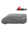 Wysokogatunkowy pokrowiec Mobile Garage na kamper van to produkt dopasowany do potrzeb kierowców. Pokrowiec wykonany jest z aż 4-warstwowego materiału, który jest gruby, mocny i wytrzymały. Pokrowiec chroni cały kamper przed szkodliwym wpływem środowiska. Pokrowiec Mobile Garage to odpowiednia ochrona kampera przez cały rok. Jego funkcjonalność docenić można w każdej porze roku. W sezonie zimowym zapobiega osadzaniu się śniegu, szronu i lodu, a także jest odporny na przymarzanie; na jesieni chroni przed deszczem, wiatrem, liśćmi, sokami z drzew; zaś w porach letnich i wiosennych ochrania przed promieniami UV, pyłem i ptasimi odchodami.
