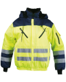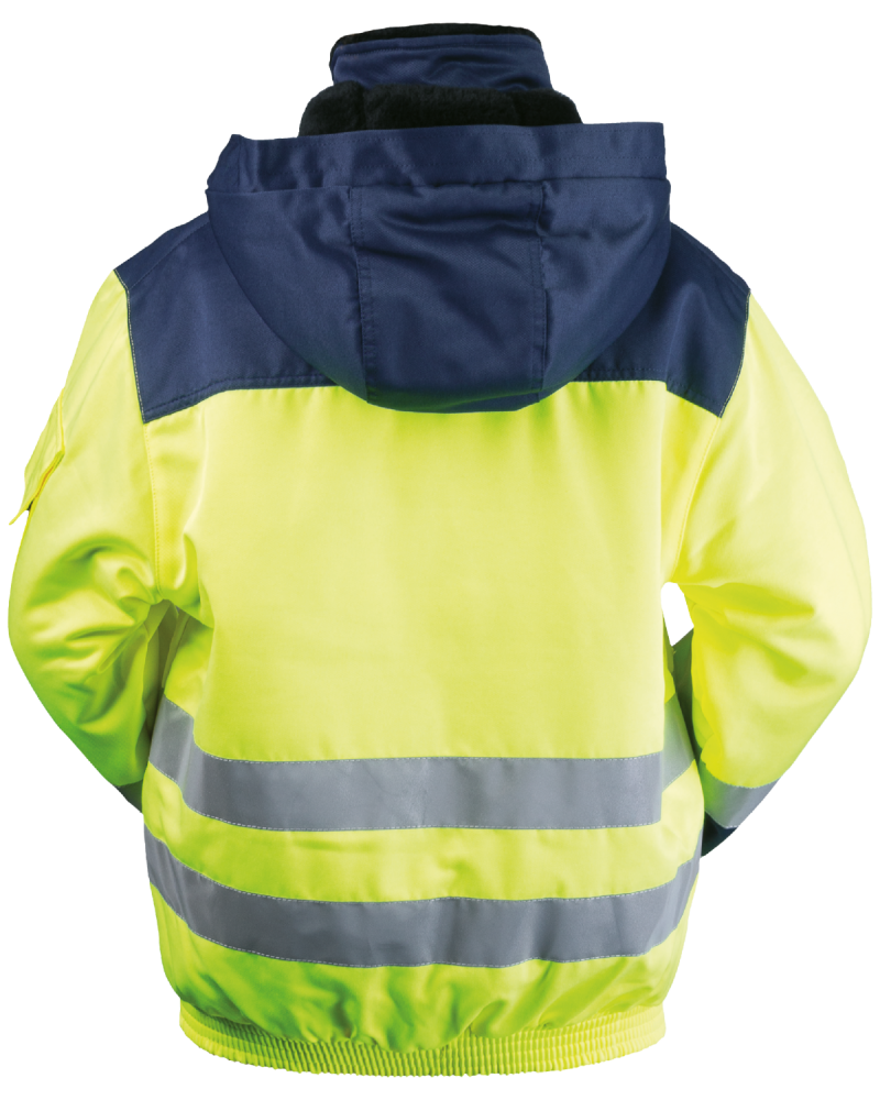 Kurtka Pilotka Robocza Odblaskowa Ciepłochronna gwarantuję bezpieczeństwo i ochronę użytkownika w każdych warunkach i miejscach pracy, gdzie musi on być prawidłowo i wyraźnie widoczny dla użytkowników pojazdów i innych urządzeń mechanicznych, zarówno w świetle dziennym, jak i nocnym (reflektory). Dodatkową ochronę zapewniają naszyte taśmy odblaskowe o szerokości 5 cm.