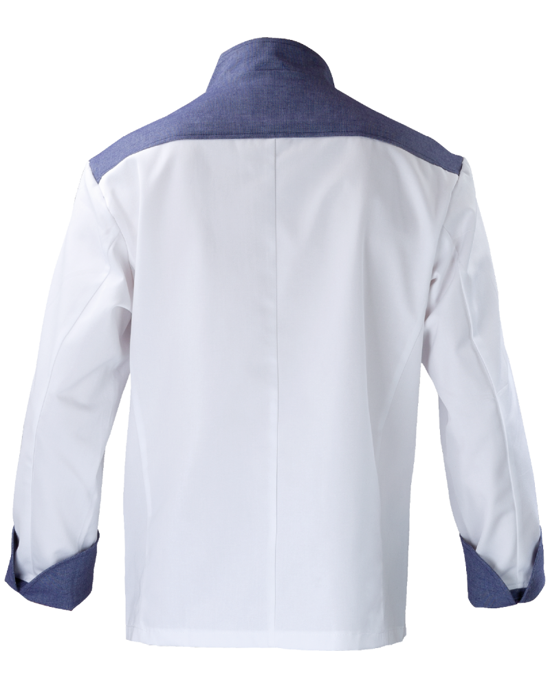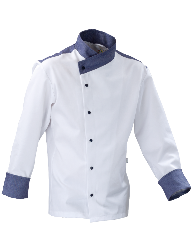 Bluza kucharska z firmowej kolekcji Food & Gastro & Clean jest idealna, uniwersalna (rozmiary – gwarantują dobór zarówno dla panów, jak i pań) dla każdego kucharza, szefa kuchni. Odzież uszyta z wysokiej jakości materiałów – tkanina Klopman, przy użyciu nowoczesnych technologii, zapewniających komfort oraz bezpieczeństwo podczas noszenia. Wyróżniają ją cięcia modelujące z boku i z tyłu doskonale podkreślające sylwetkę oraz dodatki kontrastowe z materiału imitującego jeans.