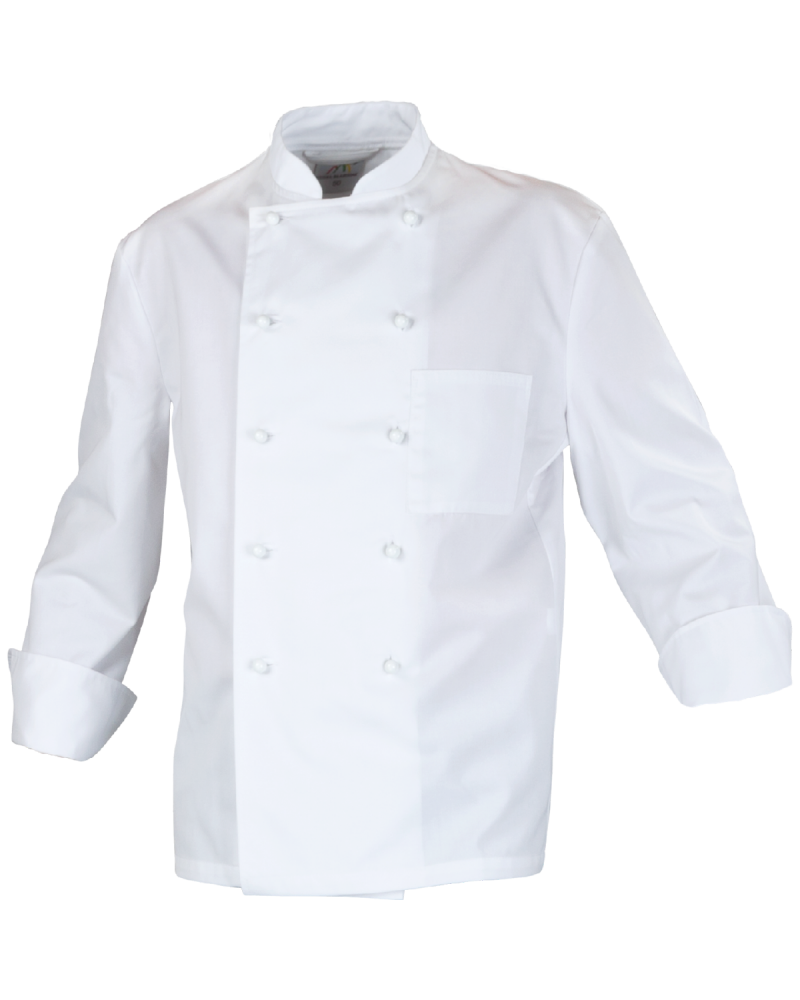 Bluza kucharska Szef z firmowej kolekcji Food & Gastro została zaprojektowana i uszyta specjalnie dla wymagających szefów kuchni, dla których każdy detal ma znaczenie i zapewnia pełne poczucie komfortu i wygody. Odzież wykonana z wysokiej jakości materiałów – tkanina z przewagą bawełny Klopman, przy użyciu nowoczesnych technologii gwarantujących dłuższy okres użytkowania i bezpieczeństwo podczas noszenia. Dodatkowo bluzę wyróżniają cięcia modelujące z boku doskonale podkreślające sylwetkę, kieszeń piersiowa, profesjonalne guziki kucharskie.