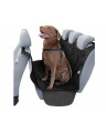 Pokrowiec posiada wewnętrzny stelaż i tworzy pewnego rodzaju hamak, co pozwala psu wyłożyć się w nim wygodnie. Zasłonięcie przestrzeni pomiędzy przednimi fotelami, utrudnia psu przejście do przodu samochodu, zwiększając bezpieczeństwo Twoje i Twojego psa podczas transportu. Pełnie bezpieczeństwa zapewnia przypięcie psa samochodową smyczą poprzez specjalny regulowany otwór w pokrowcu. Pokrowiec zapewni komfortową podróż zarówno Tobie jak i twojemu pupilowi. Nie będziesz musiał się martwić o bezpieczeństwo zwierzaka czy zarysowania i zabrudzenia środka pojazdu. Ciemna kolorystyka pokrowca, sprawi, że produkt idealnie dopasuje się do wnętrza każdego samochodu.