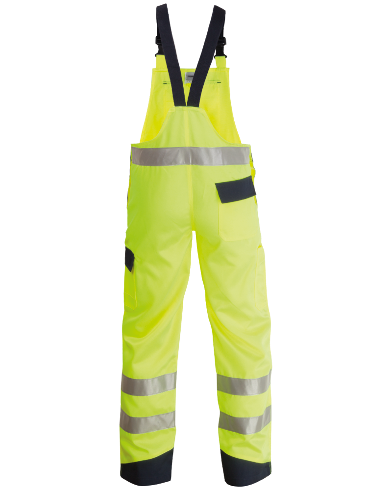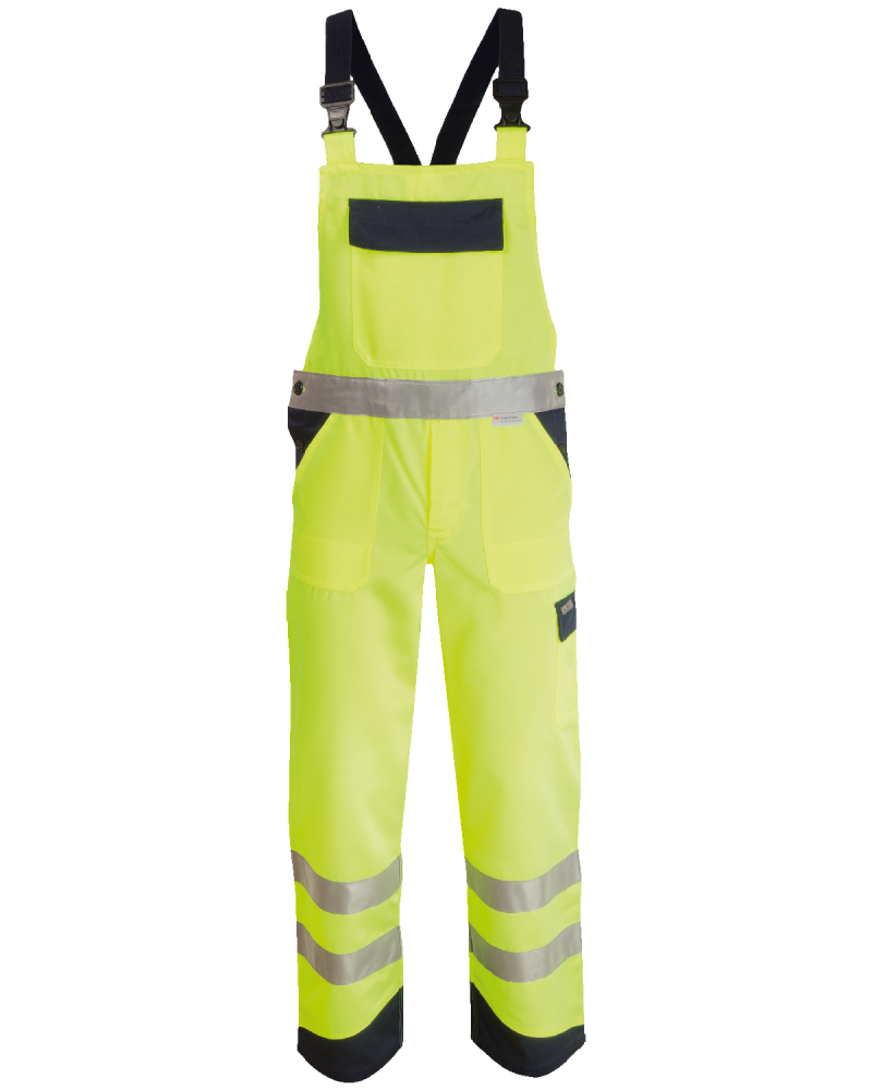 Ogrodniczki ostrzegawcze Hi-Vis Kneiter 6920 (żółto-granatowe) dbają o bezpieczeństwo i chronią w każdych warunkach i miejscach pracy, gdzie  pracownik musi być prawidłowo i wyraźnie widoczny dla użytkowników pojazdów i innych urządzeń mechanicznych, zarówno w świetle dziennym jak i nocnym (reflektory).