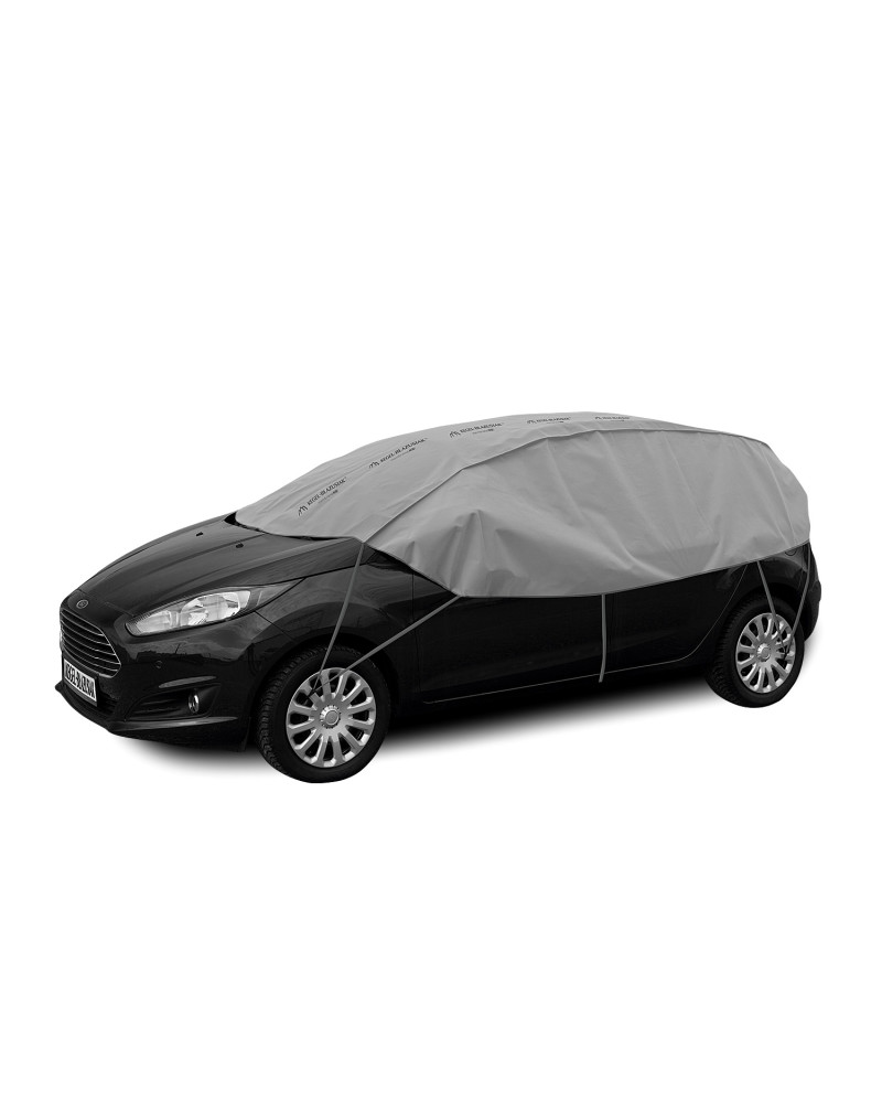Dobrej jakości materiał jest trwały i mocny. Pokrowce mają kolor popielaty, który jest niezwykle praktyczny a zarazem świetnie się prezentuje. Produkt przystosowany zarówno do doraźnego jak i długotrwałego stosowania. Stworzone z myślą o właścicielach samochodów, którzy nie mają możliwości garażowania, pozostawiają dłużej swój samochód na powietrzu. Produkt bardzo łatwy i szybki w montażu. Wystarczy elastyczne pętle pokrowca zakończone bezpiecznymi hakami zahaczyć odpowiednio o felgi, dolną krawędź w środkowej części samochodu i o dolną krawędź tylnego zderzaka (instrukcja montażu poniżej). Pokrowiec trzyma się mocno samochodu i nie przemieszcza się nawet podczas porwistego wiatru. Po złożeniu pokrowiec nie zajmuje dużo miejsca, przez co zawsze można wozić go ze sobą.