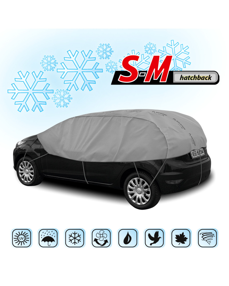 Półplandeki ochronne OPTIMIO, ochronią w zimie dach, szyby i lusterka zaparkowanego samochodu przed osadzającym się szronem i śniegiem. Osłonią klamki i zamki samochodu, zapobiegając ich zamarzaniu. Nie przymarzną do samochodu. Ochronią także przed sokami z drzew, ptasimi odchodami i osadzającymi się pyłami, a nawet promieniami UV. Dlatego możemy stosowac je o każdej porze roku.
