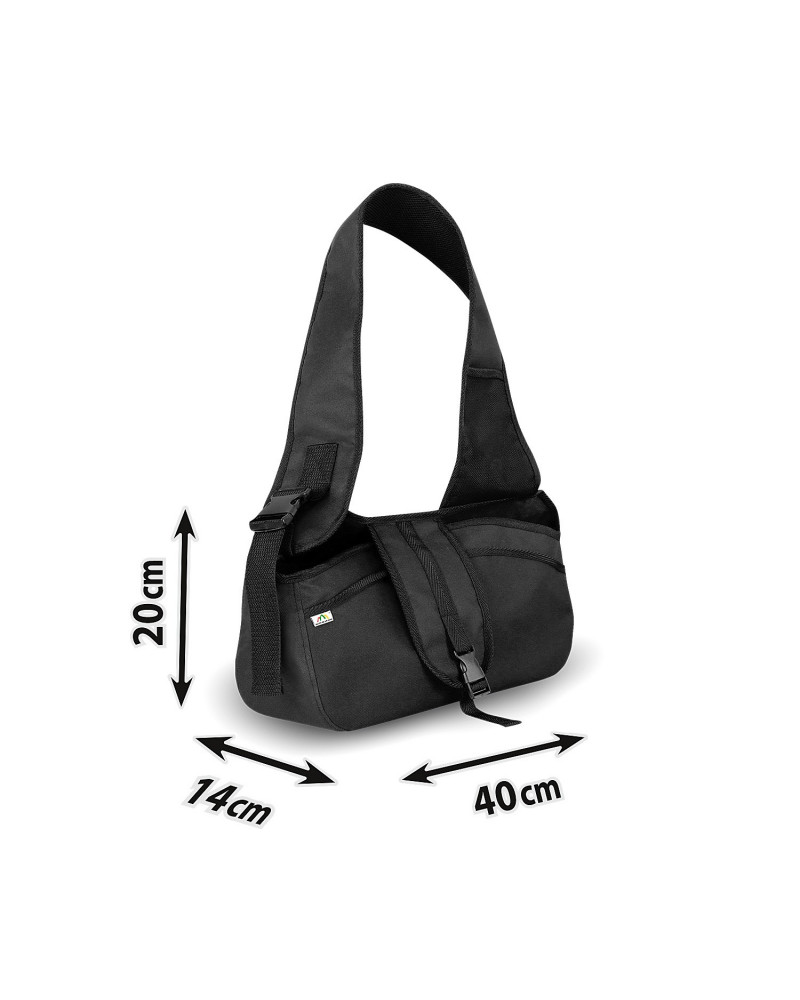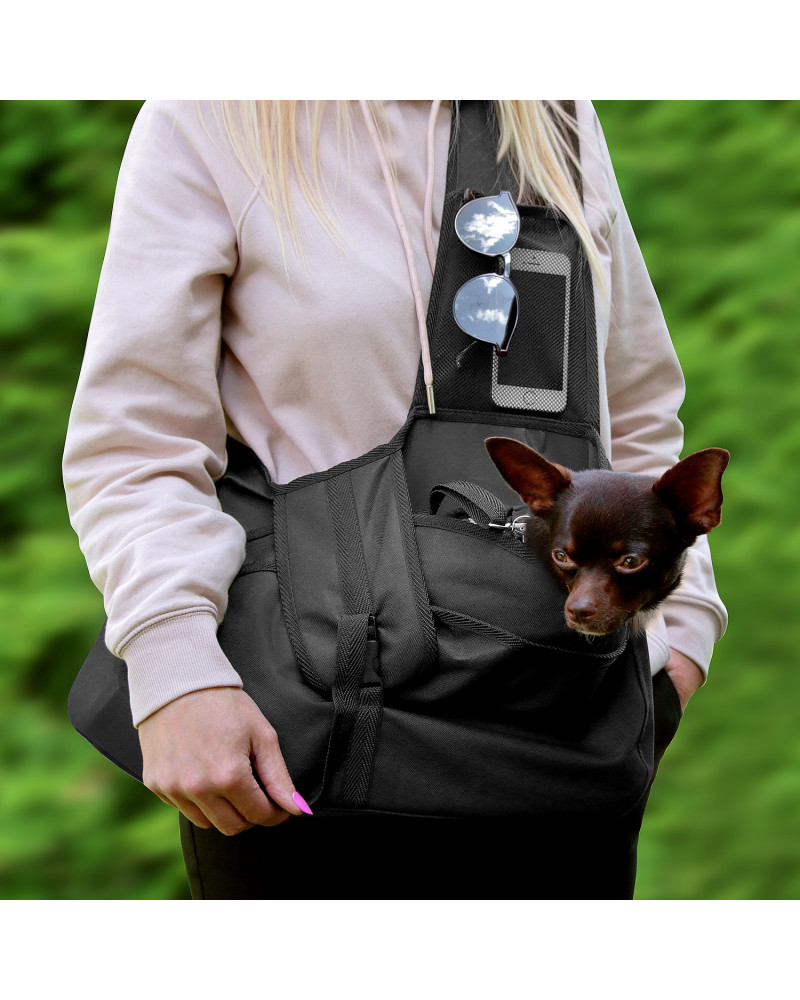 Wygodna i praktyczna torba do komfortowego przenoszenia małych psów. Zapewnia komfort przenoszonemu psu jak i jego opiekunowi. Zapewnia psu bezpieczną przestrzeń z solidną podstawą wewnątrz torby, a opiekunowi przez zastosowanie ergonomicznej konstrukcji z szerokim i regulowanym ramieniem umożliwia bezuciskowe przenoszenie psa (psów) nawet podczas długich spacerów. Dzięki starannie dopracowanej konstrukcji przenoszone psy w torbie czują się bezpiecznie i komfortowo, a bliskość opiekuna dodatkowo zwiększa poczucie bezpieczeństwa. Torba posiada usztywnione dno zapewniające psu solidną podstawę oraz kieszonki w których można przechowywać drobne przedmioty jak smartfon, smycz, smaczki itp.. Torba zapewnia opiekunowi nie tylko łatwe i wygodne przenoszenie pupila, ale także swobodę ruchów rąk, które opiekun ma obie wolne.