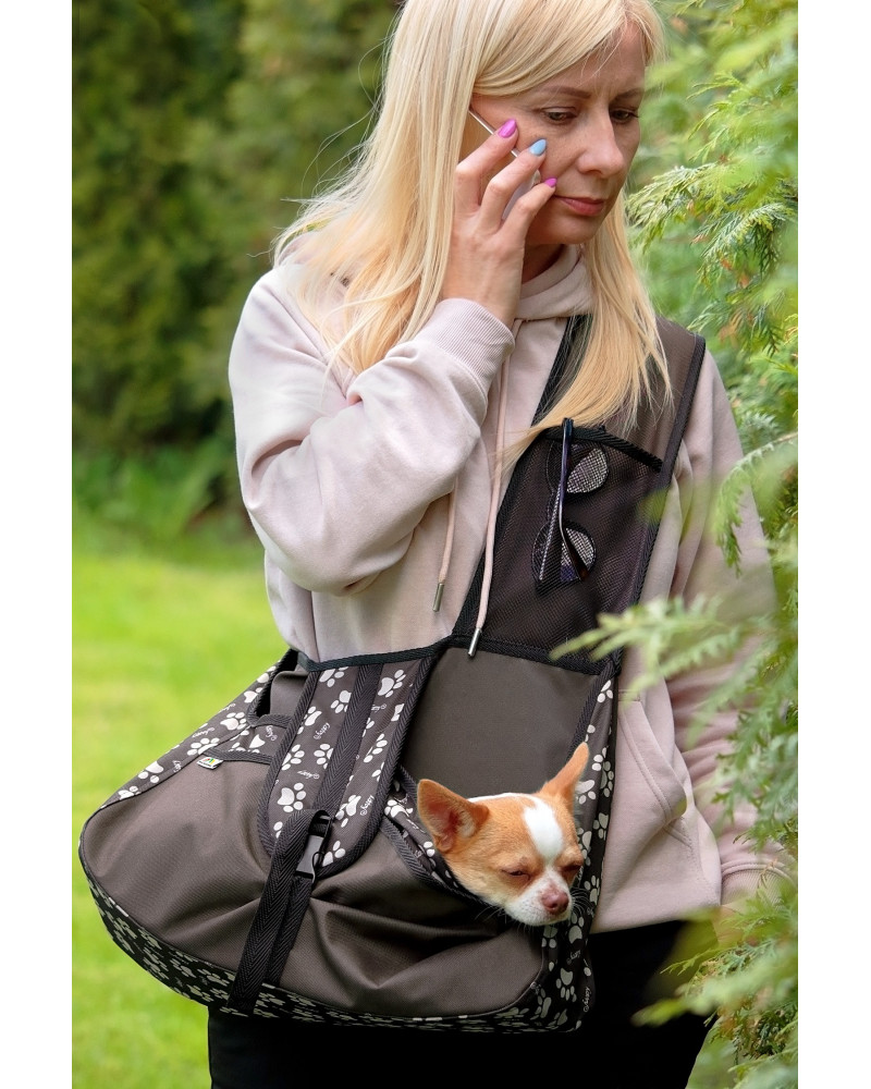 Nośność torby do 8 kg. Z mini smyczą wewnątrz torby oraz z zapinaną klapą z regulacją dla zabezpieczenia psa przed wyskoczeniem. Wygodna i praktyczna torba do komfortowego przenoszenia małych psów. Zapewnia komfort przenoszonemu psu jak i jego opiekunowi. Zapewnia psu bezpieczną przestrzeń z solidną podstawą wewnątrz torby, a opiekunowi przez zastosowanie ergonomicznej konstrukcji z szerokim i regulowanym ramieniem umożliwia bezuciskowe przenoszenie psa nawet podczas długich spacerów.