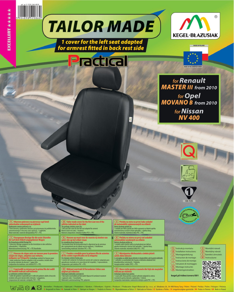 Nieprzemakalny, niebrudzący i niezwykle wytrzymały materiał zapewnia praktyczny użytek. Oferta skierowana do właścicieli konkretnych samochodów dostawczych i mikrobusów, którzy chcą zadbać o wnętrze swoich pojazdów oraz dodać im szyku i elegancji. Czarna, uniwersalna kolorystyka idealnie dopasowuje się do wnętrza każdego pojazdu. Pokrowce świetnie prezentują się w każdym samochodzie. Są wyjątkowo eleganckie, dlatego też dzięki nim każde wnętrze nabierze klasy i wdzięku. Pokrowce wyposażone są w niezbędne, zapinane otwory umożliwiające założenie pokrowca bez konieczności wyciągania zagłówków i wykonywania dodatkowych otworów. Konstrukcja pokrowca umożliwia też założenie pokrowca na fotel z podłokietnikiem, jeżeli fotel taki posiada. Komplet wyposażony jest w specjalne klamerki montażowe, a do materiału wszyte są mocowania, dlatego tez bardzo łatwo go założyć. Wszelkie zabrudzenia pokrowca, są bardzo łatwe do usunięcia- wystarczy przetrzeć je wilgotną ścierką. Produkt renomowanej firmy Kegel-Błażusiak. Największego producenta i eksportera w branży pokrowców samochodowych i odzieży roboczej. Lata doświadczenia i coraz bardziej doskonały asortyment sprawiają, że pokrowce tejże marki można określić mianem najlepszych w Polsce. Produkowany w Polsce, głównie z polskich surowców z zachowaniem wszystkich standardów jakościowych Unii Europejskiej. Kupując pokrowce Kegel-Błażusiak wspierasz polską gospodarkę i chronisz polskie miejsca pracy.