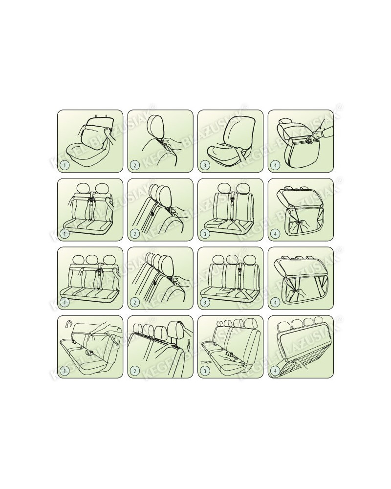 - Wyposażony w niezbędne otwory, umożliwiające założenie pokrowca bez konieczności wyciągania zagłówków i robienia dodatkowych przeszyć.