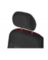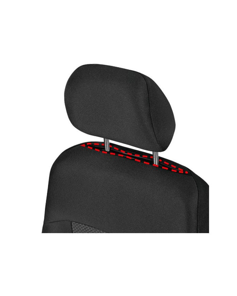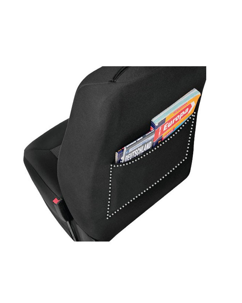Pokrowce wyposażone są w niezbędne, zapinane na rzep rozcięcia, umożliwiające założenie ich, bez konieczności wyciągania zagłówków. Pokrowce są z tyłu zabudowane, dzięki czemu chroniona jest nie tylko przednia tapicerka ale również całe tylne oparcie fotela. Jest to udogodnienie szczególnie dla posiadaczy dzieci. Z tyłu pokrowca na fotel dla pasażera wszyta jest kieszeń, która może być niezwykle użyteczna.