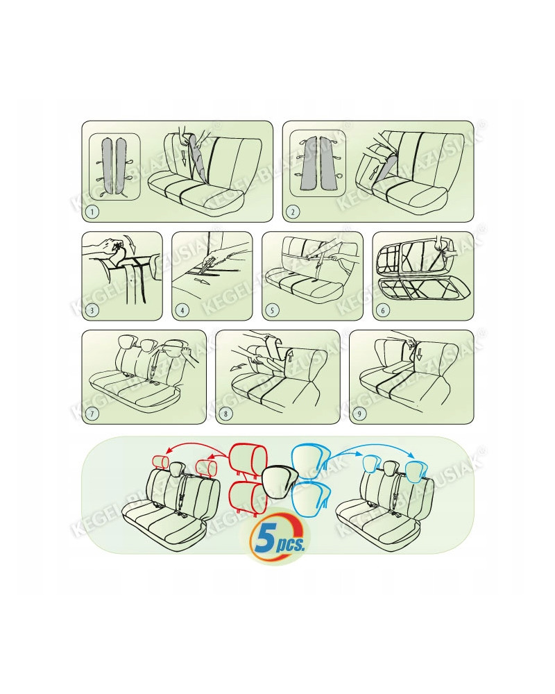 5. Załóż najlepiej pasujące pokrowce na zagłówki (pozostałe pokrowce są nadliczbowe)