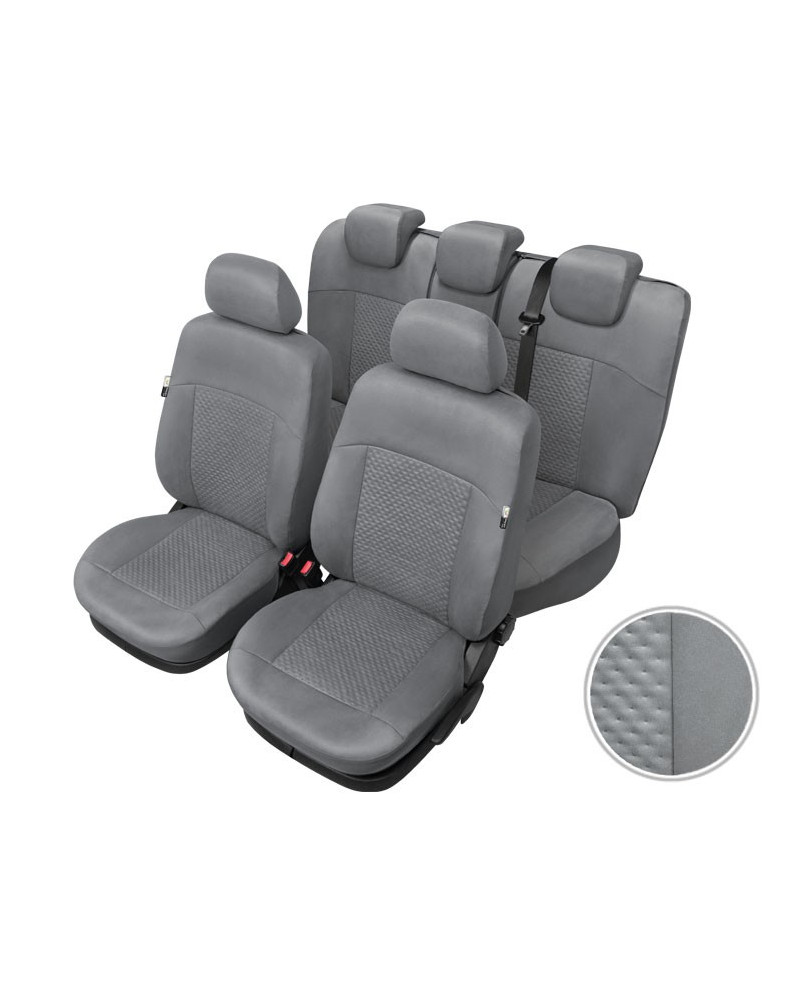 Pokrowce dopasowane ARCADIA to bardzo eleganckie i gustowne pokrowce do samochodów osobowych, które robią wrażenie. Wykonane w całości z wysokogatunkowego zamszowego materiału typu Alcantara w popielatym kolorze odznaczają się niezwykle atrakcyjnym, oryginalnym wyglądem. Ponadto są bardzo mocne i trwałe - spełniają najwyższe normy wytrzymałościowe dla materiałów tapicerskich. Materiał użyty do wykonania bocznych części został podlaminowany pianką PUR, która pozwala pokrowcom stabilnie się osadzić na fotelu. Materiał w środkowej części pokrowców został połączony za pomocą ultradźwięków z włókniną puszystą w której wytłoczono oryginalny, delikatny wzór. Oferowane przez nas pokrowce Arcadia produkujemy w praktycznym i eleganckim popielatym kolorze. Stonowana, delikatna kolorystyka idealnie wpasuje się do wnętrza każdego samochodu. Drobny wzór w środkowej części, wysoka jakość materiału oraz kolor nadadzą wnętrzu klasy, elegancji i stylowego wyrazu. Pokrowce Arcadia charakteryzują się wysoką żywotnością, odpornością na ścieranie i łatwością utrzymania. Ponadto cechuje je bardzo dobry stosunek jakości do ceny, gdyż mimo tego iż są naprawdę wysokiej klasy, ich cena jest bardzo dobra.