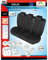 Pokrowce dopasowane SOLID – skierowane do konkretnych, wybranych modeli samochodów – bezpieczne a na domiar tego odznaczające się bardzo atrakcyjnym wyglądem. Cechą wyróżniającą pokrowce SOLID jest materiał z którego je wykonano, czyli materiał żakardowy (laminowany pianką wraz z szyfonem) o bardzo dużej wytrzymałości na rozrywanie i przecieranie, dzięki czemu pokrowce są mocne i trwałe. Dzięki podlaminowaniu pianką pokrowce dobrze przylegają do tapicerki, zapobiegając przesuwaniu się pokrowców. Pokrowce posiadają wszystkie niezbędne, elegancko wykończone otwory na elementy konstrukcyjne kanapy- rozcięcia pod zagłówki, pasy bezpieczeństwa oraz gniazda pasów. Posiadają również specjalne, zapinane na zamek rozcięcia, umożliwiające jej dzielenie. Jeżeli chcesz ochronić tapicerkę swojego samochodu przed zabrudzeniem i zniszczeniem; jeżeli chcesz odświeżyć wnętrze samochodu oraz dodać mu elegancji i klasy bardzo dobrze trafiłeś – pokrowce SOLID są dla Ciebie.