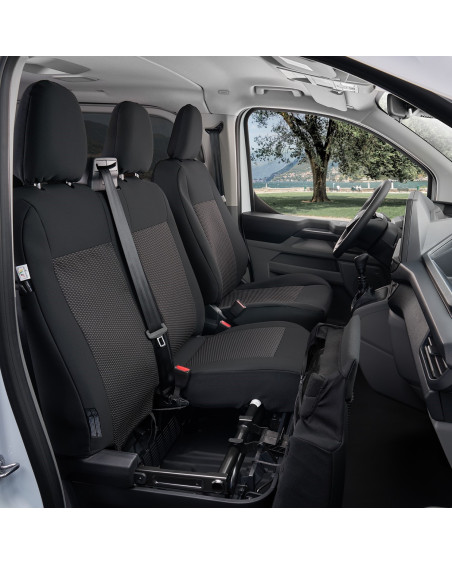- Wyposażone w specjalne zapinane na rzepę rozcięcie, umożliwiające wyciągnięcie podłokietnika w pokrowcu na fotel dla kierowcy zarówno z prawej jak i lewej strony (wersja angielska)