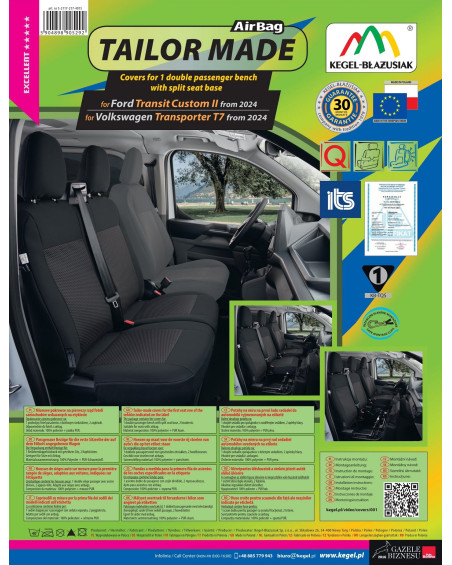 Pokrowce posiadają specjalne, bezpieczne szwy dla poduszek AirBag, dzięki czemu przystosowane są do samochodów zarówno z bocznymi poduszkami powietrznymi w fotelach, jak i do standardowych siedzeń. Profesjonalne wykonanie oraz bezpieczeństwo użytkowania gwarantują certyfikat oraz badania przeprowadzone przez Instytut Transportu Samochodowego.