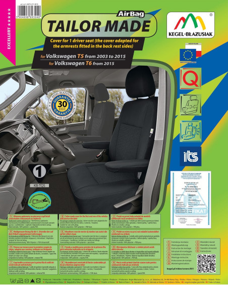 Pokrowce posiadają specjalne, bezpieczne szwy dla poduszek AirBag, dzięki czemu przystosowane są do samochodów zarówno z bocznymi poduszkami powietrznymi w fotelach, jak i do standardowych siedzeń. Profesjonalne wykonanie oraz bezpieczeństwo użytkowania gwarantują certyfikat oraz badania przeprowadzone przez Instytut Transportu Samochodowego.