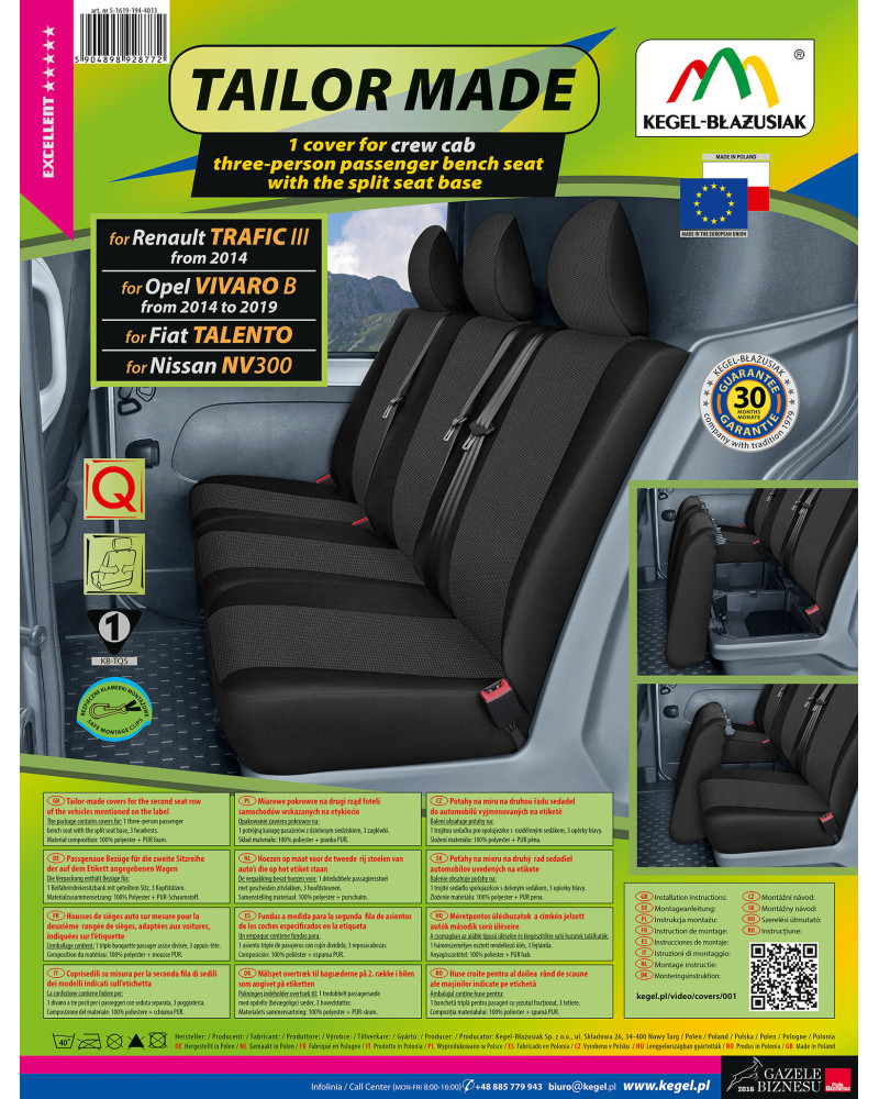 Pokrowce na podłokietniki do trzyosobowej kanapy TAILOR MADE - 2 sztuki Renault Trafic III (2014–)