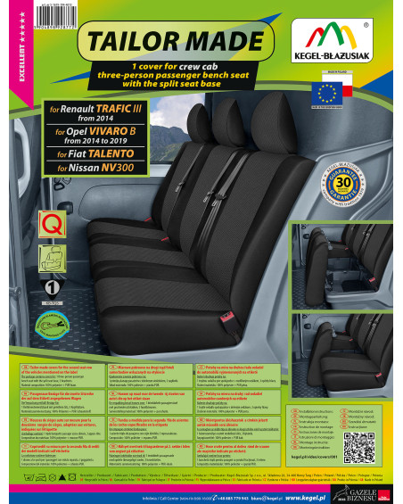 Oferta skierowana do właścicieli tego konkretnego modelu samochodu, którzy chcą zadbać o wnętrza swoich pojazdów oraz dodać im szyku i elegancji. Pokrowce samochodowe TAILOR MADE bardzo dobrze chronią oryginalną tapicerkę samochodu przed przecieraniem i zniszczeniem, a gustowna, klasyczna stylistyka wywołuje pozytywne wrażenia estetyczne. Stonowana kolorystyka- czerń wraz z delikatną szarą fakturą w środku pokrowca idealnie wkomponuje się do wnętrza każdego samochodu. Zaletą pokrowców TAILOR MADE jest to, że zakrywają całą tylną powierzchnię oparcia. Ta właściwość sprawia, że bardzo dobrze prezentują się także z tyłu fotela, jednocześnie chroniąc go przed zabrudzeniami i uszkodzeniami (ważne jest to szczególnie dla osób posiadających małe dzieci).