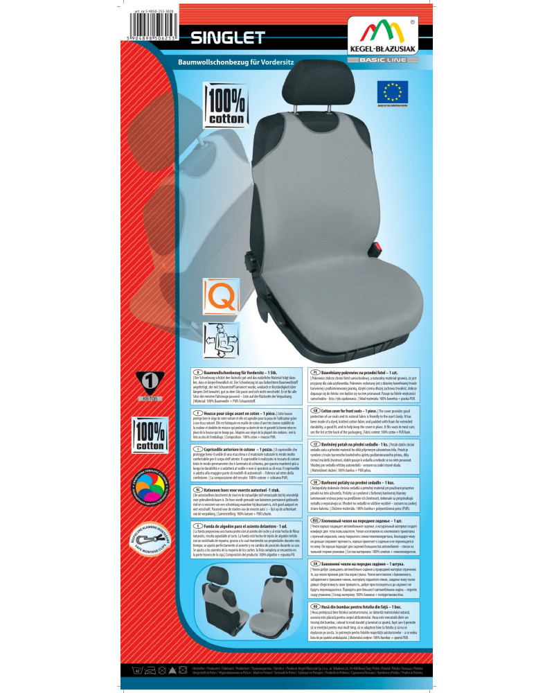 Pokrowce koszulki SINGLET serii BASIC LINE - pokrycia foteli przeznaczone do samochodów osobowych - zrobione ze 100% bawełny- naturalnego materiału o bardzo wysokiej trwałości kolorów, odporności na ścieranie, rozrywanie. Dzięki laminacji po wewnętrznej stronie pianką PUR pokrowce dobrze przylegają do siedzeń i nie przesuwają się. Koszulki pasują prawie na każdy fotel samochodowy. Bardzo łatwo zakłada się je i i szybko ściąga. Bardzo prosto się je czyści. Pokrowce koszulki od lat cieszą się niezmiennym zainteresowaniem wśród klientów. Profesjonalne wykonanie z materiału wysokiej jakości gwarantuje długi czas użytkowania.