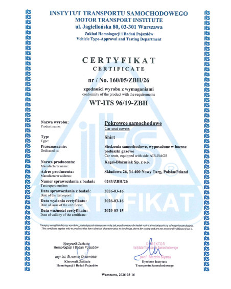 Pokrowce koszulki posiadają też niezbędne, odpowiedniej wielkości otwory, umożliwiające założenie pokrowca bez konieczności wyciągania zagłówków i wykonywania dodatkowych otworów. Komplet wyposażony jest w specjalne plastikowe klamerki, a do materiału wszyte są mocowania, co przy pomocy dołączonej obrazkowej instrukcji obsługi zapewnia bardzo łatwy montaż. Produkt serii BASIC LINE, której hasłem przewodnim jest – bardzo dobra jakość w przystępnej cenie. Produkowany z dobrej jakości surowców . Pokrowce tej marki spełniają wszelkie normy wytrzymałościowe i jakościowe. Ich staranne wykonanie z dobrych materiałów, doskonale sprawdza się w branży samochodowej.