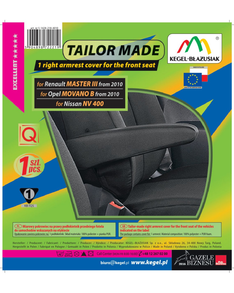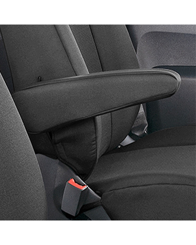 - Wyposażone w specjalne zapinane na rzepę rozcięcie, umożliwiające wyciągnięcie podłokietnika w pokrowcu na fotel dla kierowcy