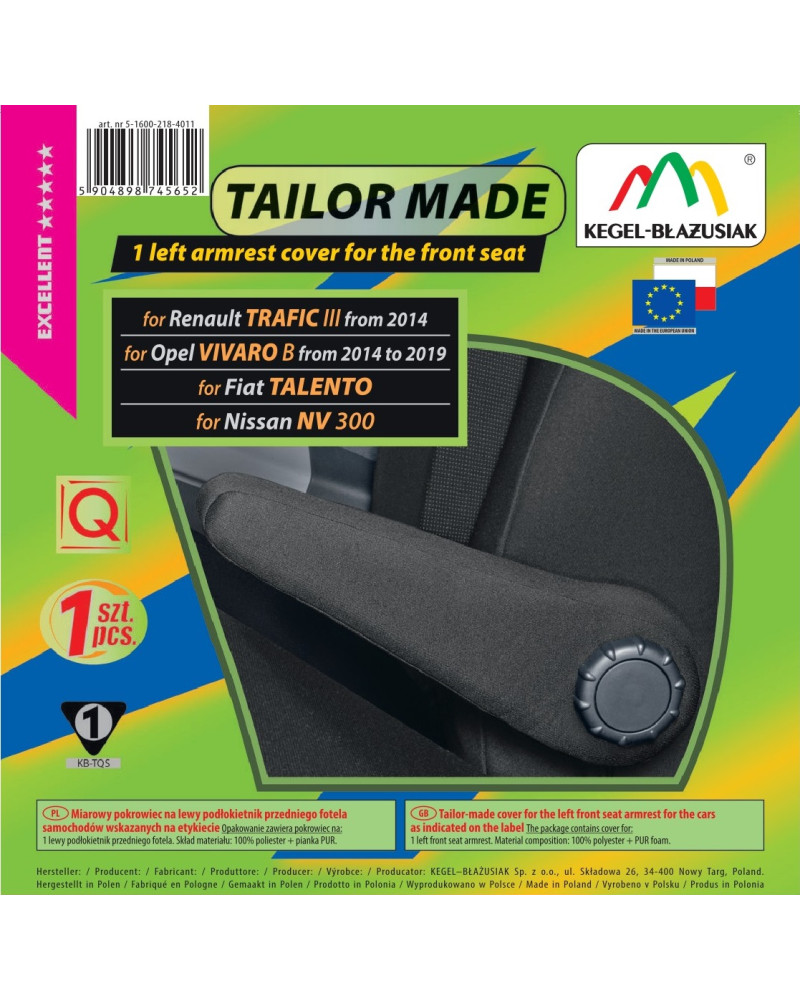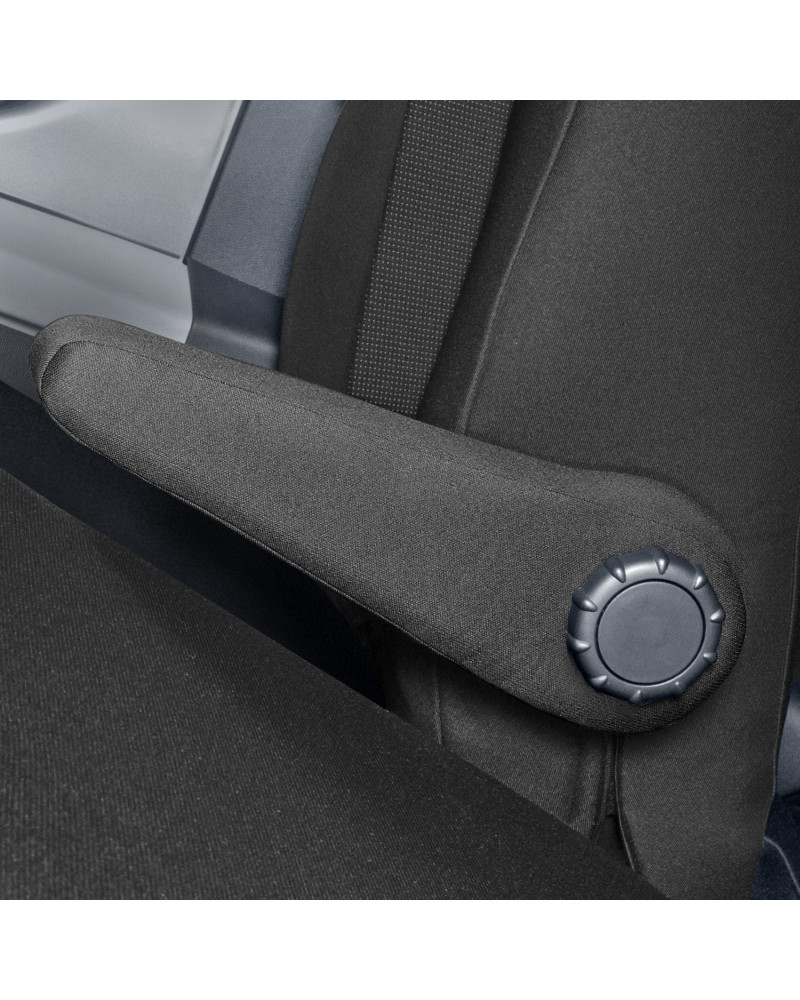 - Wyposażone w specjalne zapinane na rzepę rozcięcie, umożliwiające wyciągnięcie podłokietnika w pokrowcu na fotel dla kierowcy