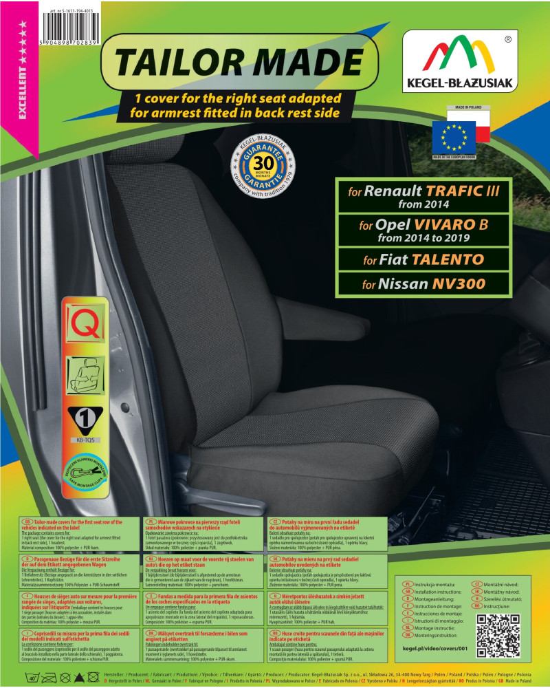 1 pokrowiec na fotel pasażera (pokrowiec przystosowany jest do podłokietnika zamontowanego w bocznej części oparcia)