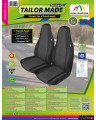 Pokrowce miarowe TAILOR MADE zostały wykonane z wysokogatunkowego materiału tapicerskiego (zarówno z przodu jak i z tyłu), co w połączeniu ze starannością wykończenia nawet najdrobniejszych detali, zadowoli najbardziej wymagających klientów. Dzięki odpowiedniej, przestrzennej budowie oraz konkretnemu dopasowaniu ich do Państwa samochodu, pokrowce świetnie dopasowują się do foteli. Materiał idealnie przylega do foteli, zastępując ich właściwą tapicerkę. Podlaminowanie po wewnętrznej stronie całego materiału trudnopalną pianką PUR, zapobiega ich przesuwaniu.
