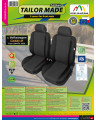 Oferta skierowana do właścicieli tego konkretnego modelu samochodu, którzy chcą zadbać o wnętrza swoich pojazdów oraz dodać im szyku i elegancji. Pokrowce samochodowe TAILOR MADE bardzo dobrze chronią oryginalną tapicerkę samochodu przed przecieraniem i zniszczeniem, a gustowna, klasyczna stylistyka wywołuje pozytywne wrażenia estetyczne. Stonowana kolorystyka- czerń wraz z delikatną szarą fakturą w środku pokrowca idealnie wkomponuje się do wnętrza każdego samochodu. Zaletą pokrowców TAILOR MADE jest to, że zakrywają całą tylną powierzchnię oparcia. Ta właściwość sprawia, że bardzo dobrze prezentują się także z tyłu fotela, jednocześnie chroniąc go przed zabrudzeniami i uszkodzeniami (ważne jest to szczególnie dla osób posiadających małe dzieci).