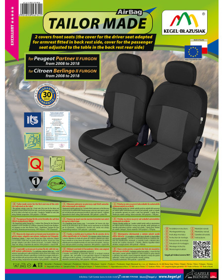 Pokrowce posiadają specjalne, bezpieczne szwy dla poduszek AirBag, dzięki czemu przystosowane są do samochodów zarówno z bocznymi poduszkami powietrznymi w fotelach, jak i do standardowych siedzeń. Profesjonalne wykonanie oraz bezpieczeństwo użytkowania gwarantują certyfikat oraz badania przeprowadzone przez Instytut Transportu Samochodowego.