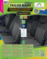 Oferta skierowana do właścicieli tego konkretnego modelu samochodu, którzy chcą zadbać o wnętrza swoich pojazdów oraz dodać im szyku i elegancji. Pokrowce samochodowe TAILOR MADE bardzo dobrze chronią oryginalną tapicerkę samochodu przed przecieraniem i zniszczeniem, a gustowna, klasyczna stylistyka wywołuje pozytywne wrażenia estetyczne. Stonowana kolorystyka- czerń wraz z delikatną szarą fakturą w środku pokrowca idealnie wkomponuje się do wnętrza każdego samochodu. Zaletą pokrowców TAILOR MADE jest to, że zakrywają całą tylną powierzchnię oparcia. Ta właściwość sprawia, że bardzo dobrze prezentują się także z tyłu fotela, jednocześnie chroniąc go przed zabrudzeniami i uszkodzeniami (ważne jest to szczególnie dla osób posiadających małe dzieci).