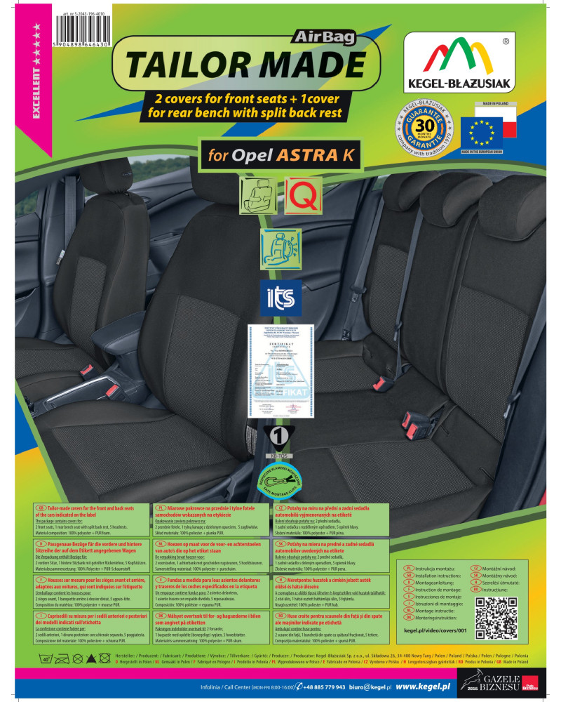 Pokrowce miarowe TAILOR MADE na przednie siedzenia Opel Astra K (2015–)