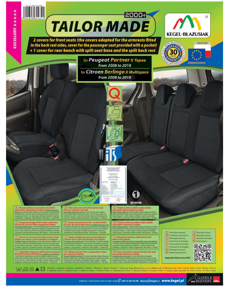 Pokrowce na przednie siedzenia TAILOR MADE Citroen Berlingo II (2008–2018)