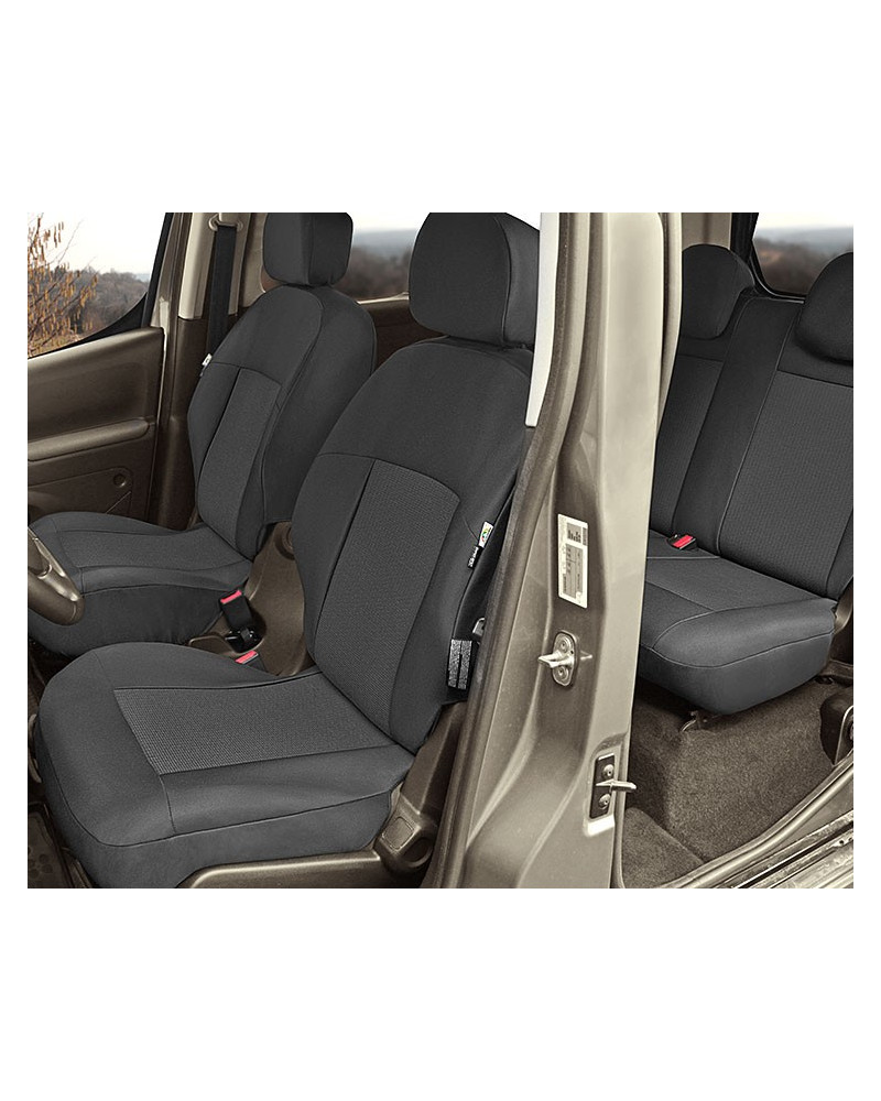 2 pokrowce na przednie fotele (pokrowce przystosowane do podłokietników zamontowanych w bocznych częściach oparcia, pokrowiec na fotel pasażera wyposażony w kieszeń)