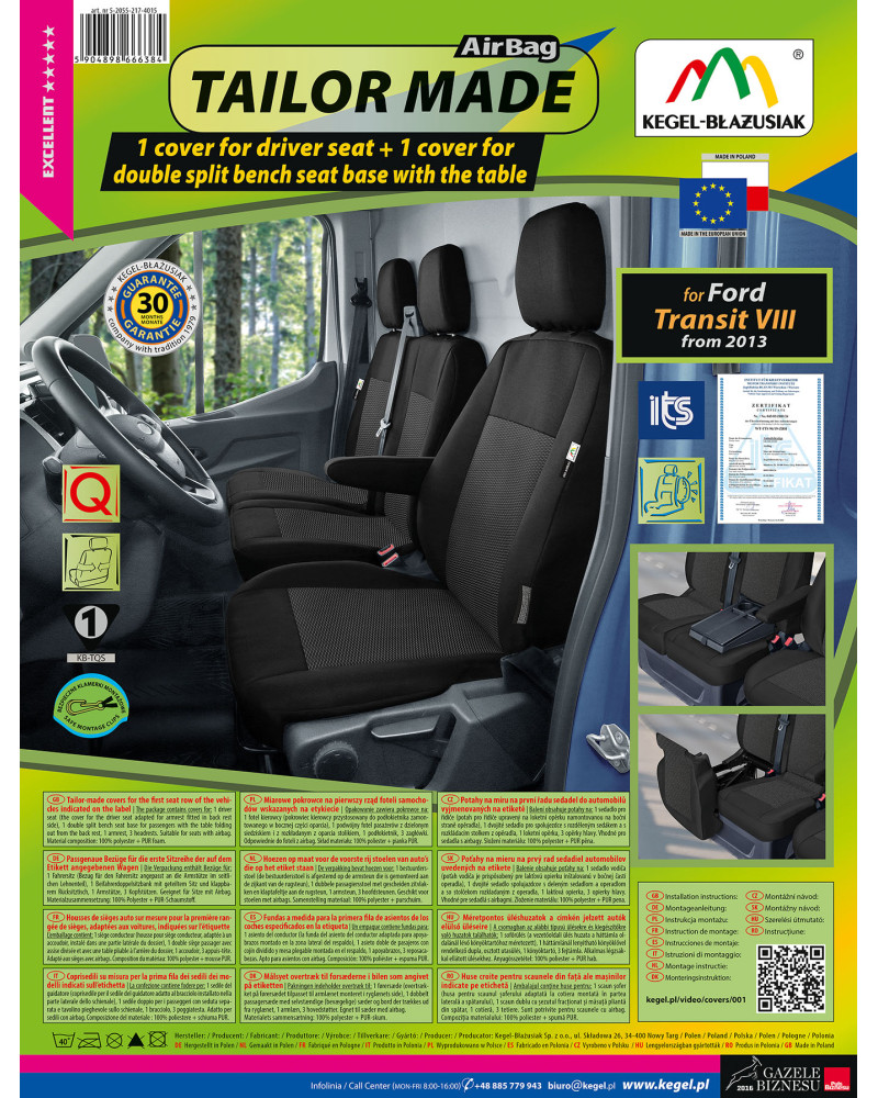 Pokrowce posiadają specjalne, bezpieczne szwy dla poduszek AirBag w fotelu kierowcy. Profesjonalne wykonanie oraz bezpieczeństwo użytkowania gwarantują certyfikat oraz badania przeprowadzone przez Instytut Transportu Samochodowego.