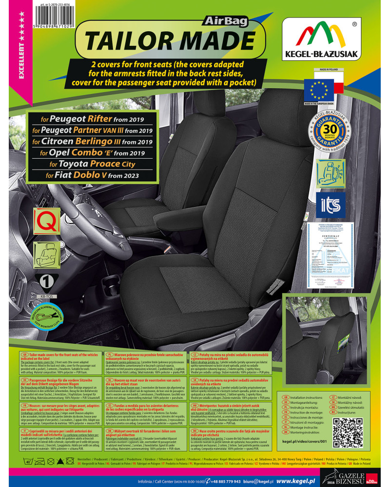 Pokrowce na przednie siedzenia TAILOR MADE Toyota Proace City