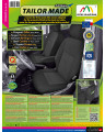 Oferta skierowana do właścicieli tego konkretnego modelu samochodu, którzy chcą zadbać o wnętrza swoich pojazdów oraz dodać im szyku i elegancji. Pokrowce samochodowe TAILOR MADE bardzo dobrze chronią oryginalną tapicerkę samochodu przed przecieraniem i zniszczeniem, a gustowna, klasyczna stylistyka wywołuje pozytywne wrażenia estetyczne. Stonowana kolorystyka- czerń wraz z delikatną szarą fakturą w środku pokrowca idealnie wkomponuje się do wnętrza każdego samochodu. Zaletą pokrowców TAILOR MADE jest to, że zakrywają całą tylną powierzchnię oparcia. Ta właściwość sprawia, że bardzo dobrze prezentują się także z tyłu fotela, jednocześnie chroniąc go przed zabrudzeniami i uszkodzeniami (ważne jest to szczególnie dla osób posiadających małe dzieci).