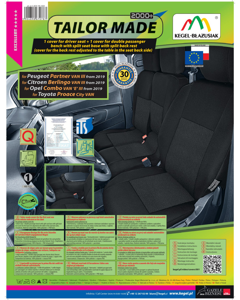 1 pokrowiec na podwójny fotel pasażerów z dzielonym siedziskiem i oparciem (pokrowiec na oparcie dostosowany do stolika w tylnej części fotela)