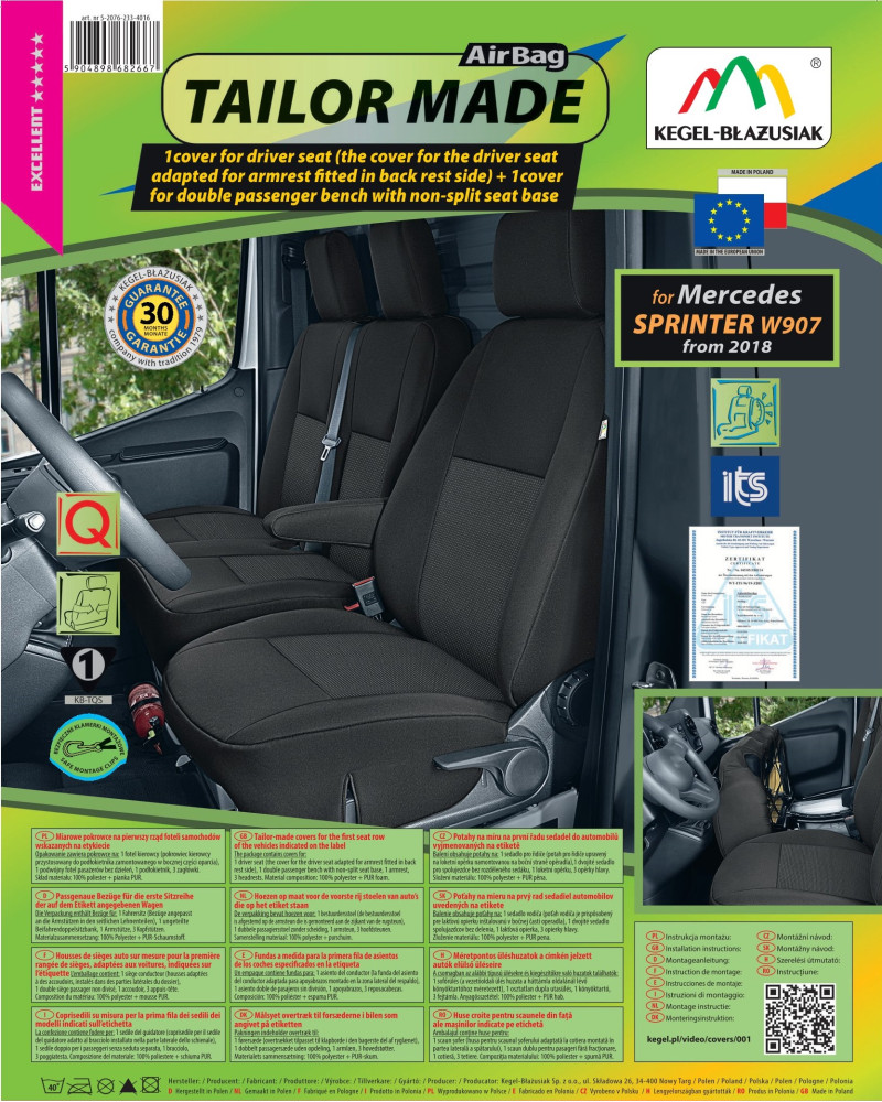 Pokrowce miarowe TAILOR MADE zostały zaprojektowane z myślą o właścicielach konkretnych samochodów dostawczych i mikrobusów, chcących zadbać o wnętrza swoich pojazdów- dodać im klasy i elegancji oraz ochronić tapicerkę przed wszelkiego rodzaju zabrudzeniami i uszkodzeniami. Dzięki odpowiedniej budowie, materiał dobrze dopasowuje się do siedzenia, a podlaminowanie po wewnętrznej stronie trudno-palną pianką PUR, zapobiega przesuwaniu pokrowca. Pokrowce ARES spełniają najwyższe normy wytrzymałościowe. Solidność wykonania oraz gwarancję bezpieczeństwa potwierdzają badania.
