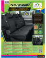 Oferta skierowana do właścicieli tego konkretnego modelu samochodu, którzy chcą zadbać o wnętrza swoich pojazdów oraz dodać im szyku i elegancji. Pokrowce samochodowe TAILOR MADE bardzo dobrze chronią oryginalną tapicerkę samochodu przed przecieraniem i zniszczeniem, a gustowna, klasyczna stylistyka wywołuje pozytywne wrażenia estetyczne. Stonowana kolorystyka- czerń wraz z delikatną szarą fakturą w środku pokrowca idealnie wkomponuje się do wnętrza każdego samochodu. Zaletą pokrowców TAILOR MADE jest to, że zakrywają całą tylną powierzchnię oparcia. Ta właściwość sprawia, że bardzo dobrze prezentują się także z tyłu fotela, jednocześnie chroniąc go przed zabrudzeniami i uszkodzeniami (ważne jest to szczególnie dla osób posiadających małe dzieci).