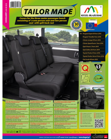 Pokrowiec TAILOR MADE na fotel kierowcy i podwójne siedzenie pasażerów 1+2