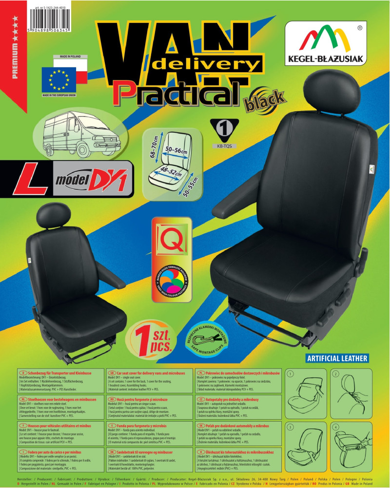 Nieprzemakalny, niebrudzący i niezwykle wytrzymały materiał zapewnia praktyczny użytek. Oferta skierowana do właścicieli samochodów dostawczych i mikrobusów, którzy chcą zadbać o wnętrze swoich pojazdów oraz dodać im szyku i elegancji. Czarna, uniwersalna kolorystyka idealnie dopasowuje się do wnętrza każdego pojazdu. Pokrowce świetnie prezentują się w każdym samochodzie. Są wyjątkowo eleganckie, dlatego też dzięki nim każde wnętrze nabierze klasy i wdzięku. Pokrowce wyposażone są w niezbędne, zapinane otwory umożliwiające założenie pokrowca bez konieczności wyciągania zagłówków i wykonywania dodatkowych otworów. Konstrukcja pokrowca umożliwia też założenie pokrowca na fotel z podłokietnikiem, jeżeli fotel taki posiada. Komplet wyposażony jest w specjalne klamerki montażowe, a do materiału wszyte są mocowania, dlatego tez bardzo łatwo go założyć. Wszelkie zabrudzenia pokrowca, są bardzo łatwe do usunięcia- wystarczy przetrzeć je wilgotną ścierką. Produkt renomowanej firmy Kegel-Błażusiak. Największego producenta i eksportera w branży pokrowców samochodowych i odzieży roboczej. Lata doświadczenia i coraz bardziej doskonały asortyment sprawiają, że pokrowce tejże marki można określić mianem najlepszych w Polsce. Produkowany w Polsce, głównie z polskich surowców z zachowaniem wszystkich standardów jakościowych Unii Europejskiej. Kupując pokrowce Kegel-Błażusiak wspierasz polską gospodarkę i chronisz polskie miejsca pracy.