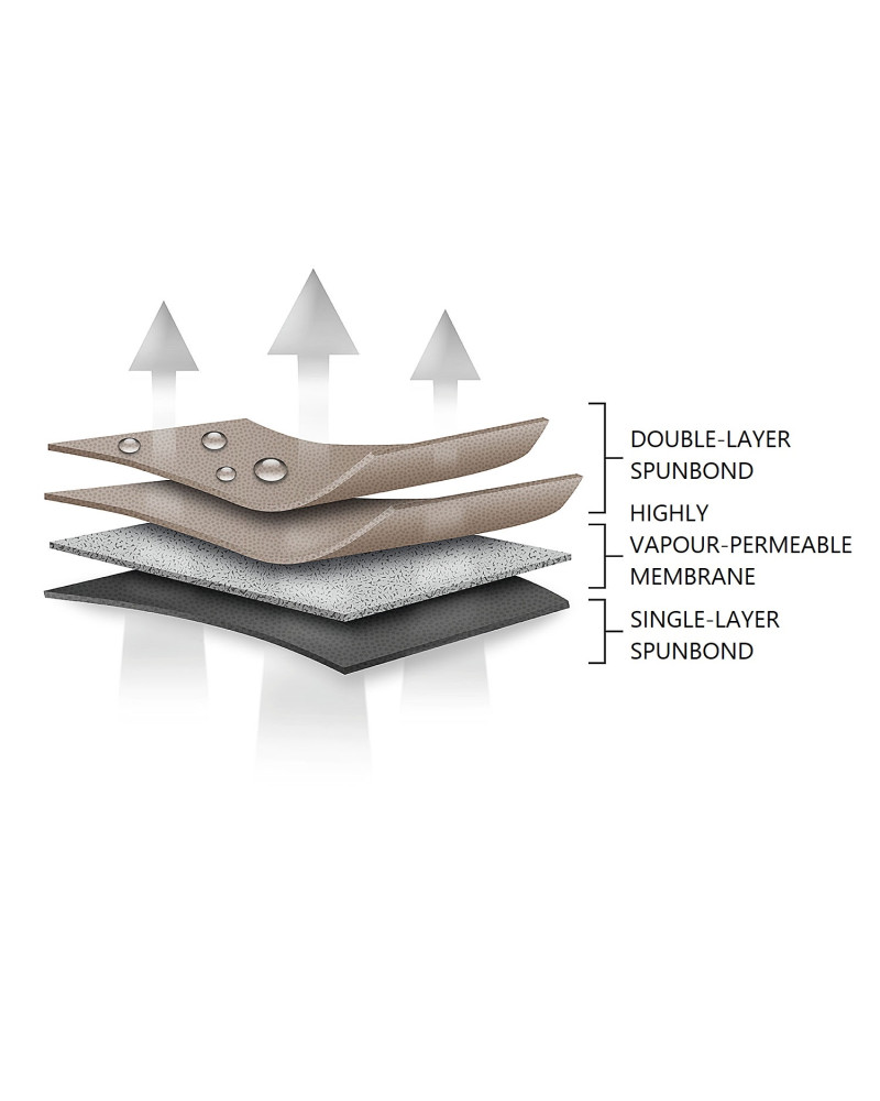 Dzięki specjalnej konstrukcji, para wodna i wilgoć są stale odprowadzane na zewnątrz, a woda podczas deszczu spływa po bocznych ścianach pokrowca, nie wnikając pod pokrowiec.