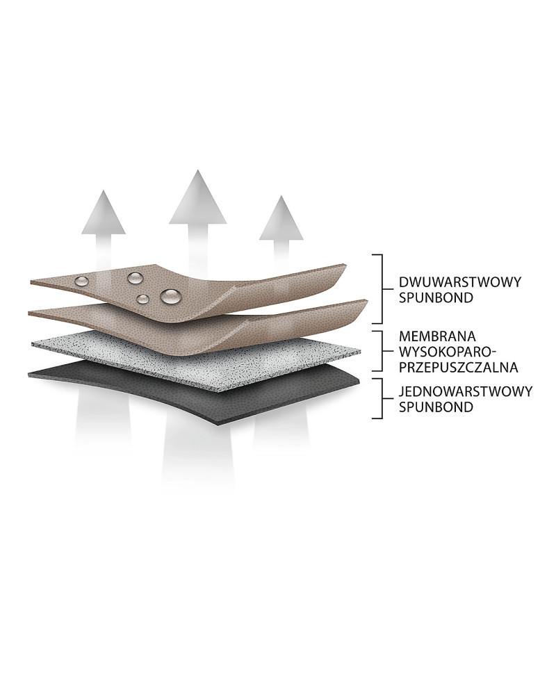 Dzięki specjalnej konstrukcji, para wodna i wilgoć są stale odprowadzane na zewnątrz, a woda podczas deszczu spływa po bocznych ścianach pokrowca, nie wnikając pod pokrowiec.