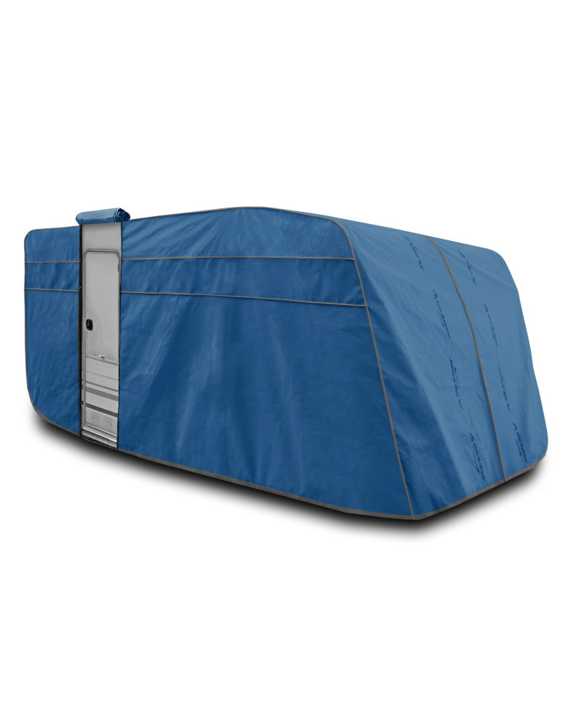Niezwykłe właściwości wielowarstwowego materiału sprawiają, że pokrowiec nie przemaka, przy jednoczesnym odprowadzaniu pary wodnej spod pokrowca na zewnątrz. Każda oznaka wilgoci, która zgromadzi się pod pokrowcem szybko wyparuje, co pozwoli uniknąć rdzewieniu przyczepy oraz powstawaniu pleśni. Pokrowiec przystosowany jest zarówno do doraźnego jak i długotrwałego stosowania.