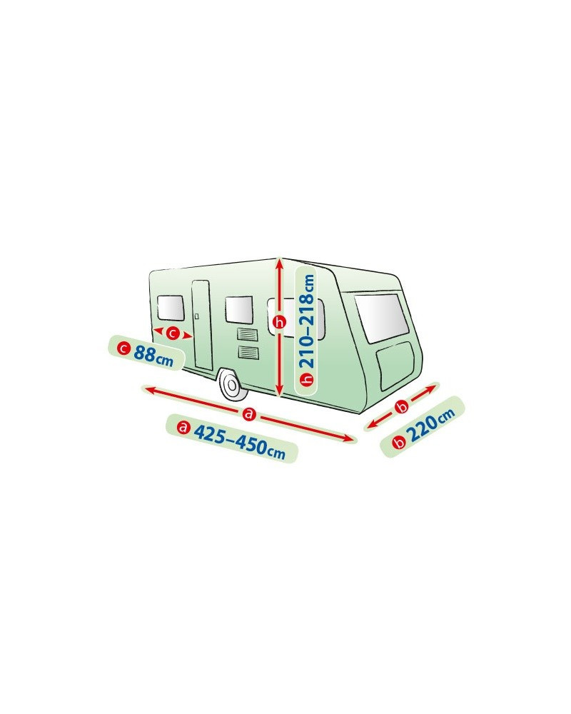 Pokrowiec założyć na czystą przyczepę czarną stroną pasa środkowego pokrowca do wewnątrz (nadrukiem na zewnątrz). Dla ułatwienia zakładania w tylnej części pokrowca od wewnętrznej strony wszyte są gniazda do wsunięcia dwóch tyczek (tyczki nie są dołączone) za pomocą których dwie osoby zaczynając od przodu przyczepy mogą łatwo założyć pokrowiec bez użycia podwyższenia. Następnie pod przyczepą przełożyć pasy pokrowca, połączyć je za pomocą klamer i mocno zaciągnąć. Pokrowiec zabrudzony od wewnętrznej strony nie powinien być używany. Pokrowiec do użytku tylko na zaparkowanej przyczepie - nie może być używany podczas przewożenia przyczepy.