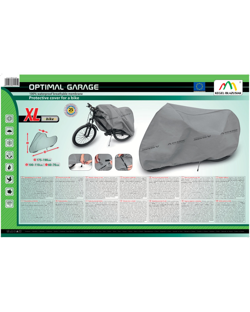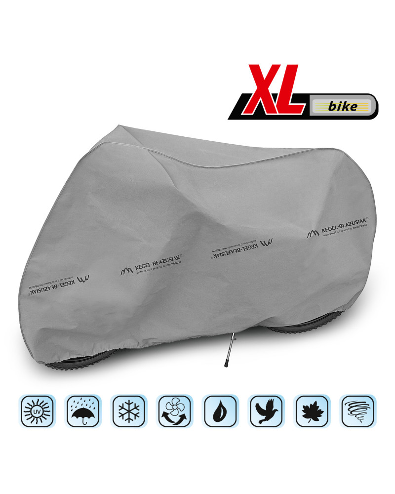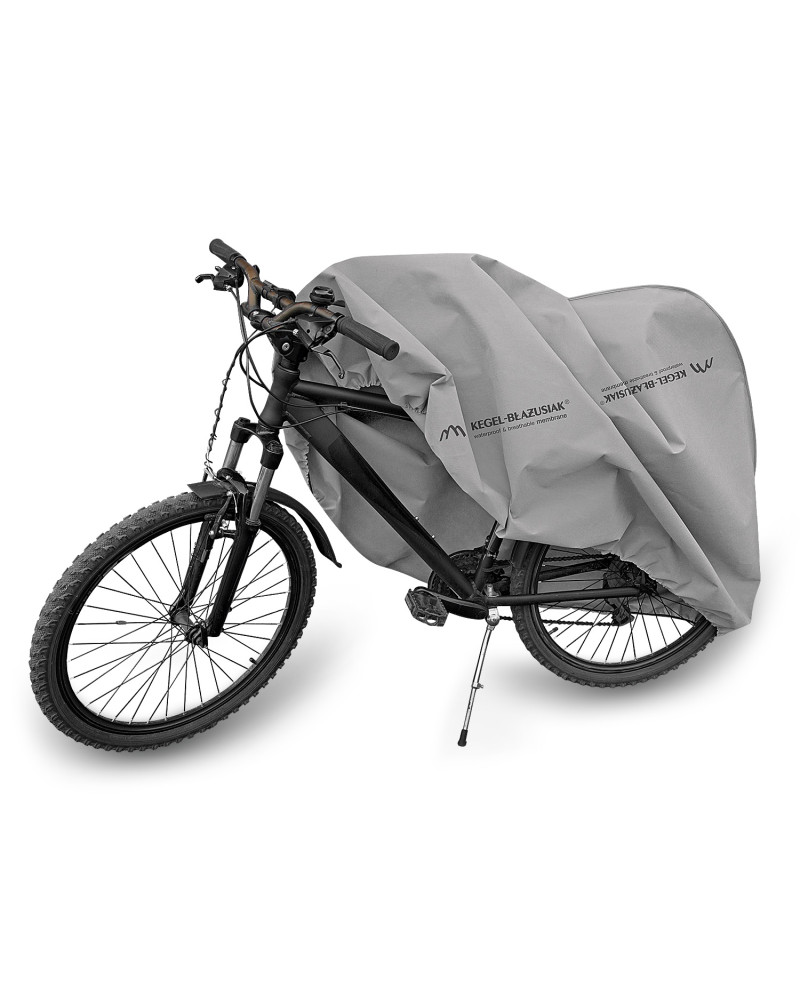 Membranowy, nieprzemakalny i jednocześnie paroprzepuszczalny pokrowiec do ochrony roweru przechowywanego na zewnątrz przed niekorzystnym wpływem środowiska. Odporny na warunki atmosferyczne pokrowiec wykonany w całości z membrany wysokoparoprzepuszczalnej. Nieprzemakalny nawet podczas intensywnego deszczu i jednocześnie paroprzepuszczalny, odprowadzający na zewnątrz wilgoć spod pokrowca. Ogranicza korozję i starzenie się elementów z tworzyw sztucznych, chroni przed blaknięciem i matowieniem lakieru oraz elementów chromowanych. Mocowany jest za pomocą elastycznego ściągacza, dzięki czemu jest łatwy do zakładania i ściągania. Dodatkowe zapięcie pod rowerem zabezpiecza przed zerwaniem pokrowca przez wiatr. Odpowiedni do długo lub krótkookresowego przechowywania na zewnątrz pomieszczeń roweru bez napędu elektrycznego. Odpowiedni także do użytku wewnątrz pomieszczeń.