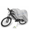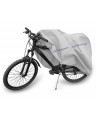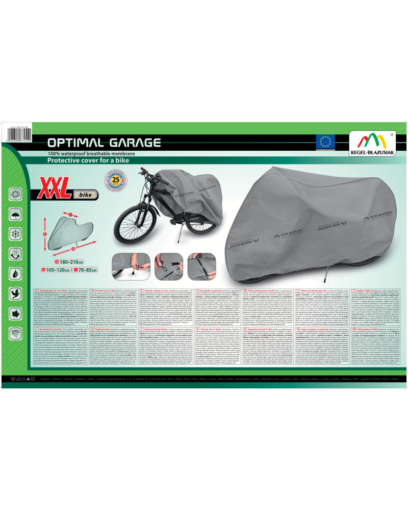 Membranowy, nieprzemakalny i jednocześnie paroprzepuszczalny pokrowiec do ochrony roweru przechowywanego na zewnątrz przed niekorzystnym wpływem środowiska. Odporny na warunki atmosferyczne pokrowiec wykonany w całości z membrany wysokoparoprzepuszczalnej. Nieprzemakalny nawet podczas intensywnego deszczu i jednocześnie paroprzepuszczalny, odprowadzający na zewnątrz wilgoć spod pokrowca. Ogranicza korozję i starzenie się elementów z tworzyw sztucznych, chroni przed blaknięciem i matowieniem lakieru oraz elementów chromowanych. Mocowany jest za pomocą elastycznego ściągacza, dzięki czemu jest łatwy do zakładania i ściągania. Dodatkowe zapięcie pod rowerem zabezpiecza przed zerwaniem pokrowca przez wiatr. Odpowiedni do długo lub krótkookresowego przechowywania na zewnątrz pomieszczeń roweru bez napędu elektrycznego. Odpowiedni także do użytku wewnątrz pomieszczeń.