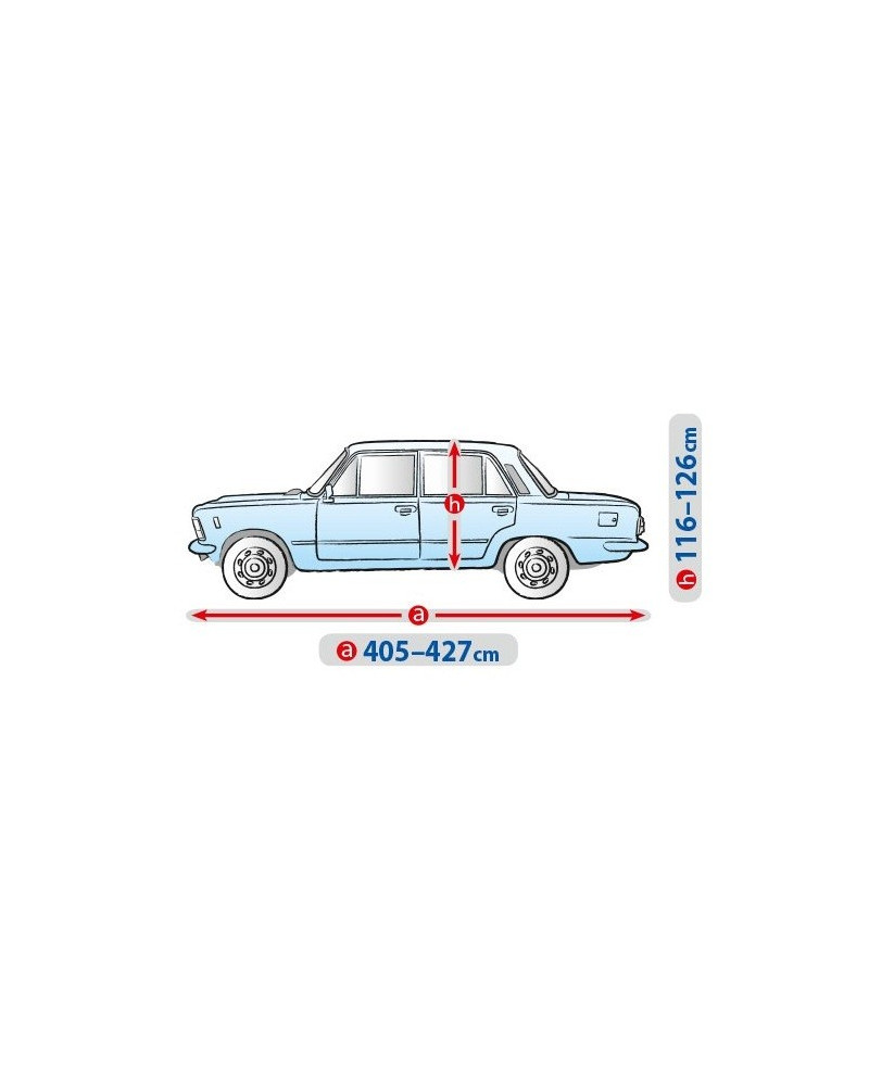 Materiał tekstylny, z którego wykonana jest plandeka dopasuje się zarówno do nieco mniejszego, jak i większego samochodu o podobnym kształcie i wymiarze nie przekraczającym podanego powyżej obwodu.